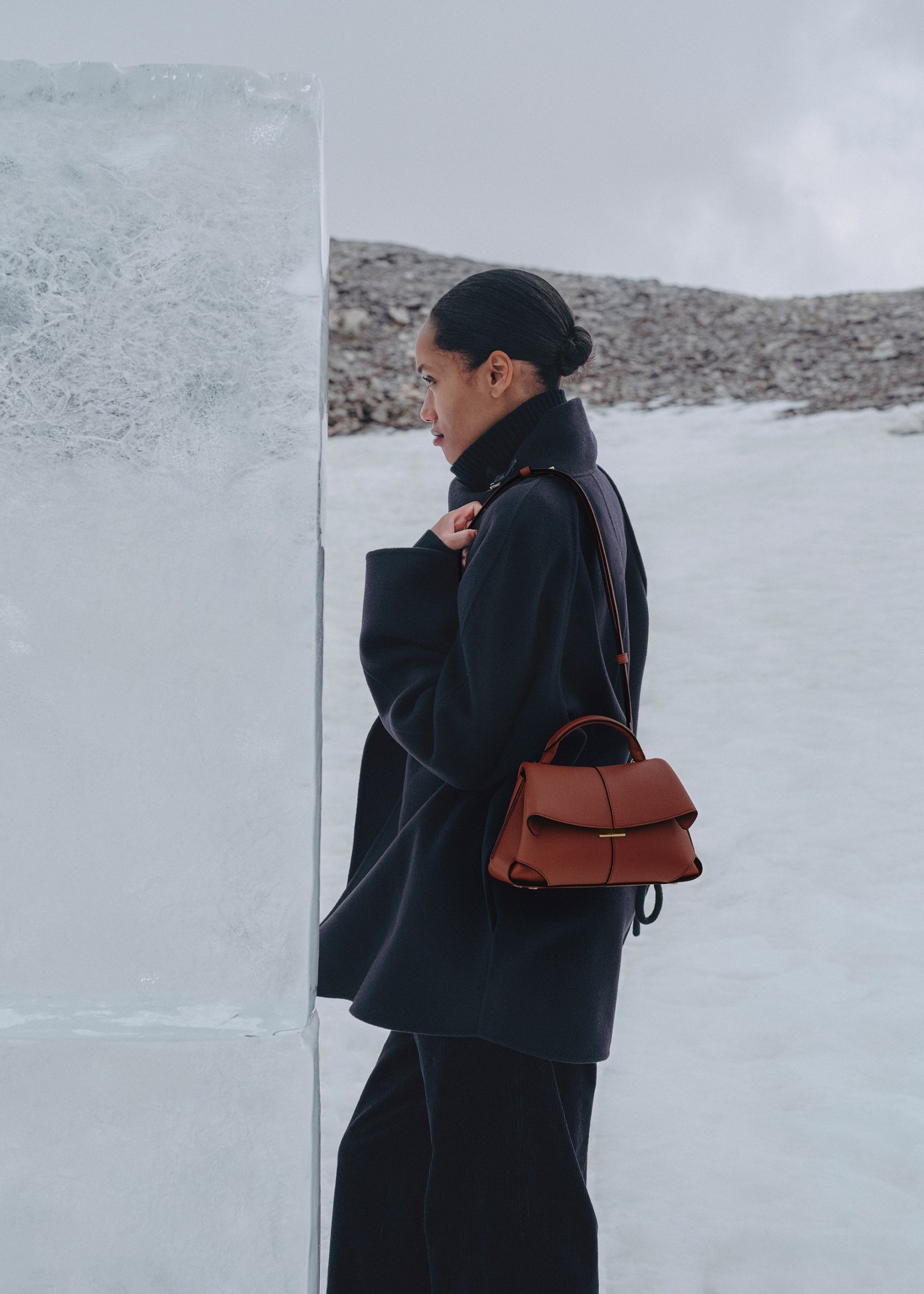 Ingeniously constructed from thirty-six leather panels. the Mokki Mini model celebrates the art of folding through a subtle interplay of textured and smooth leathers. The bag’s interior is divided into compartments. all protected by a flap that features an engraved clasp. With its adjustable shoulder strap held in place by snap hooks. the model smoothly adapts to your movements.