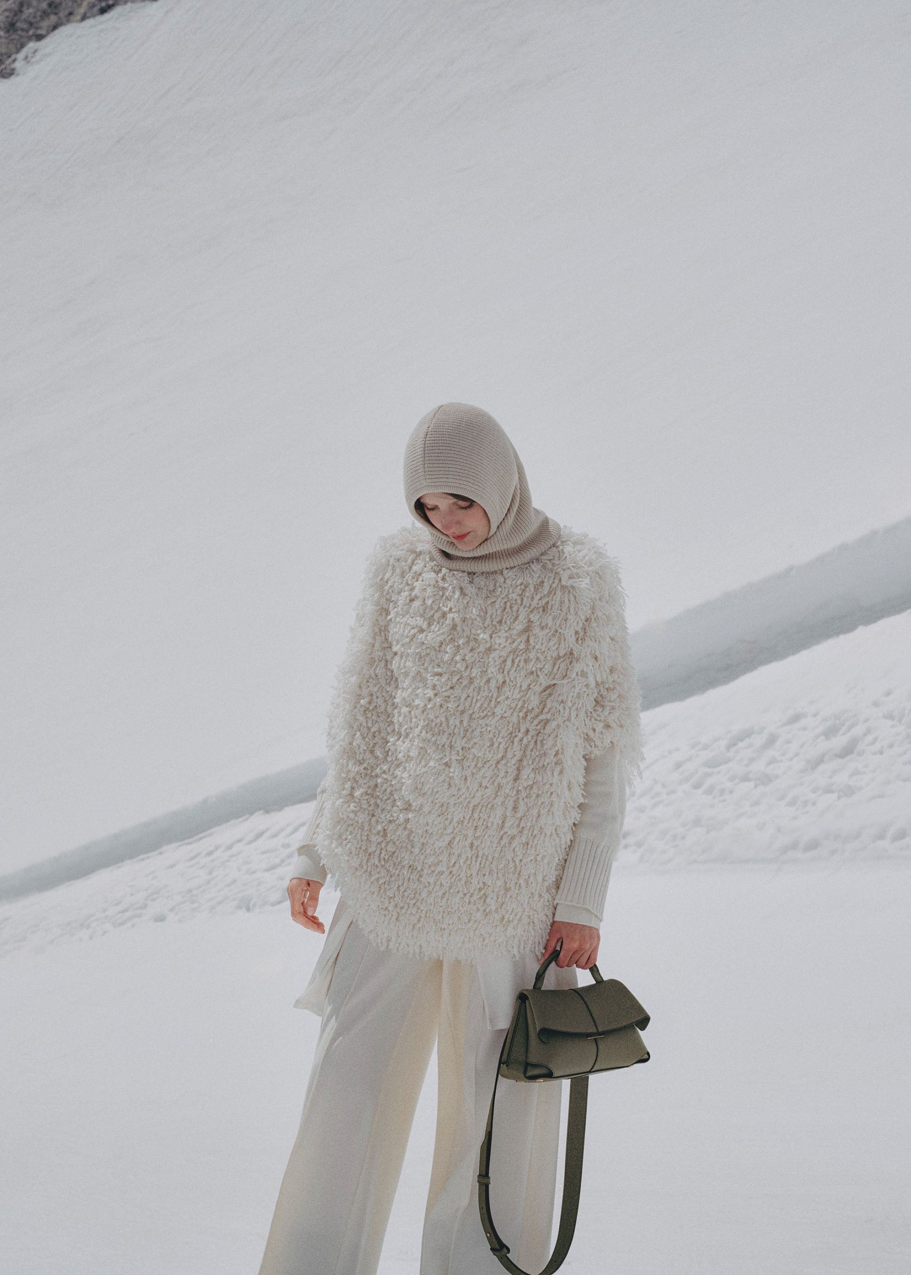 Ingeniously constructed from thirty-six leather panels. the Mokki Mini model celebrates the art of folding through a subtle interplay of textured and smooth leathers. The bag’s interior is divided into compartments. all protected by a flap that features an engraved clasp. With its adjustable shoulder strap held in place by snap hooks. the model smoothly adapts to your movements.