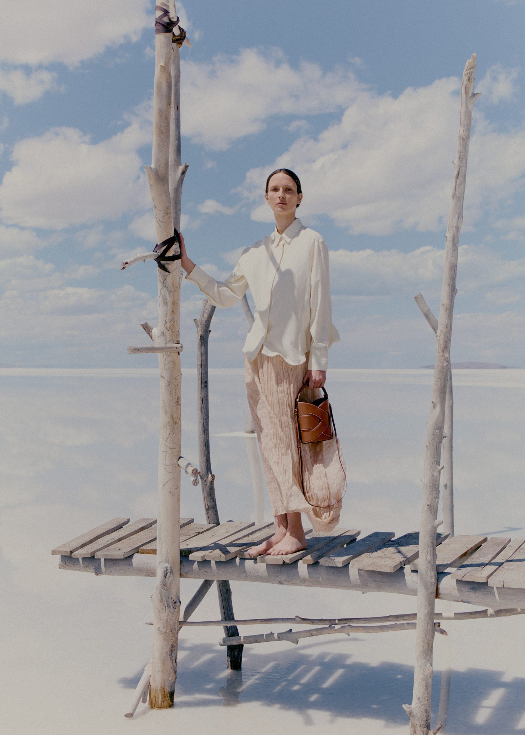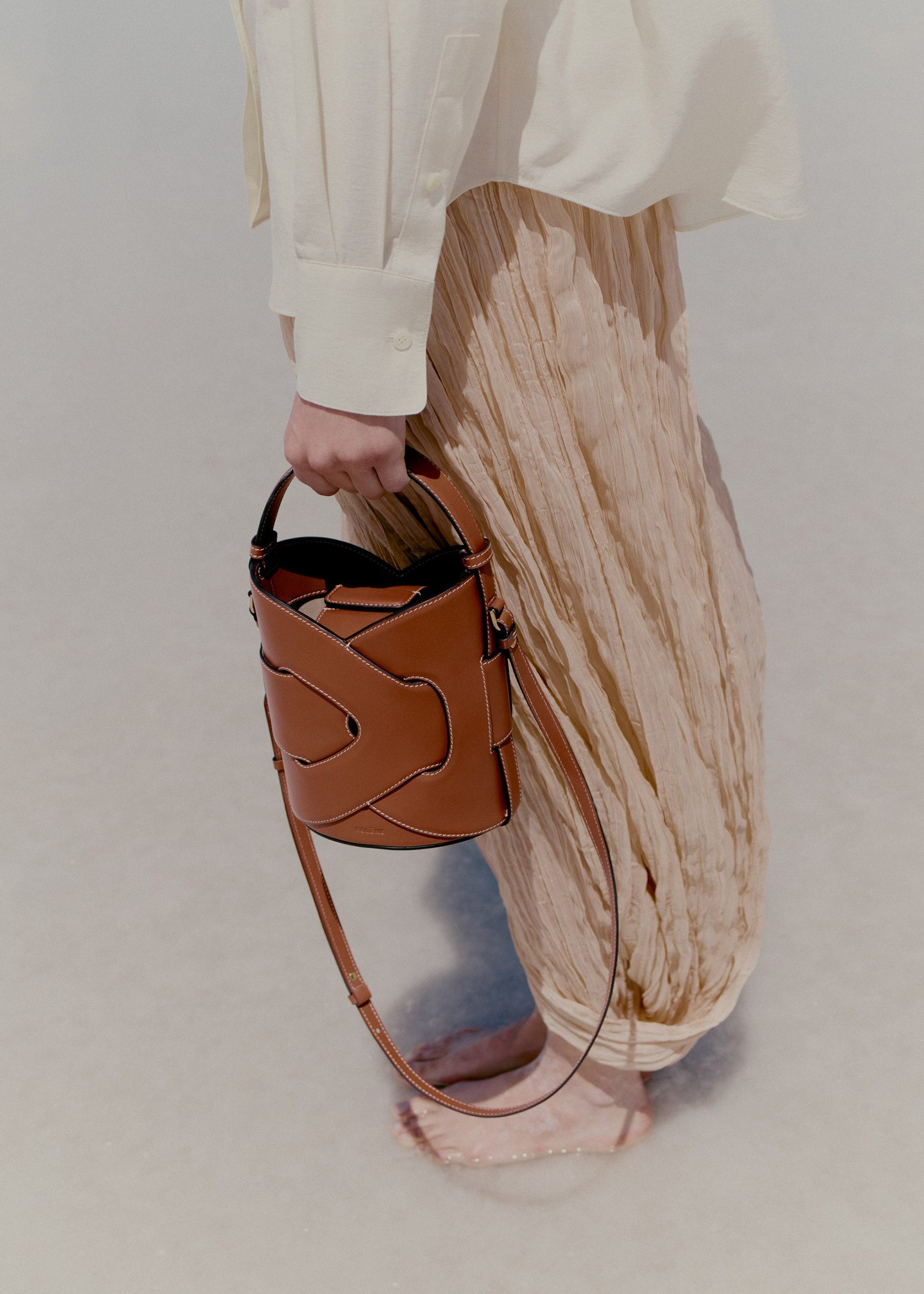 Formed by two interwoven leather pieces. the Nodde bucket bag creates the illusion of continuous interlacing. Its name is inspired by the French word noeud. meaning knot.