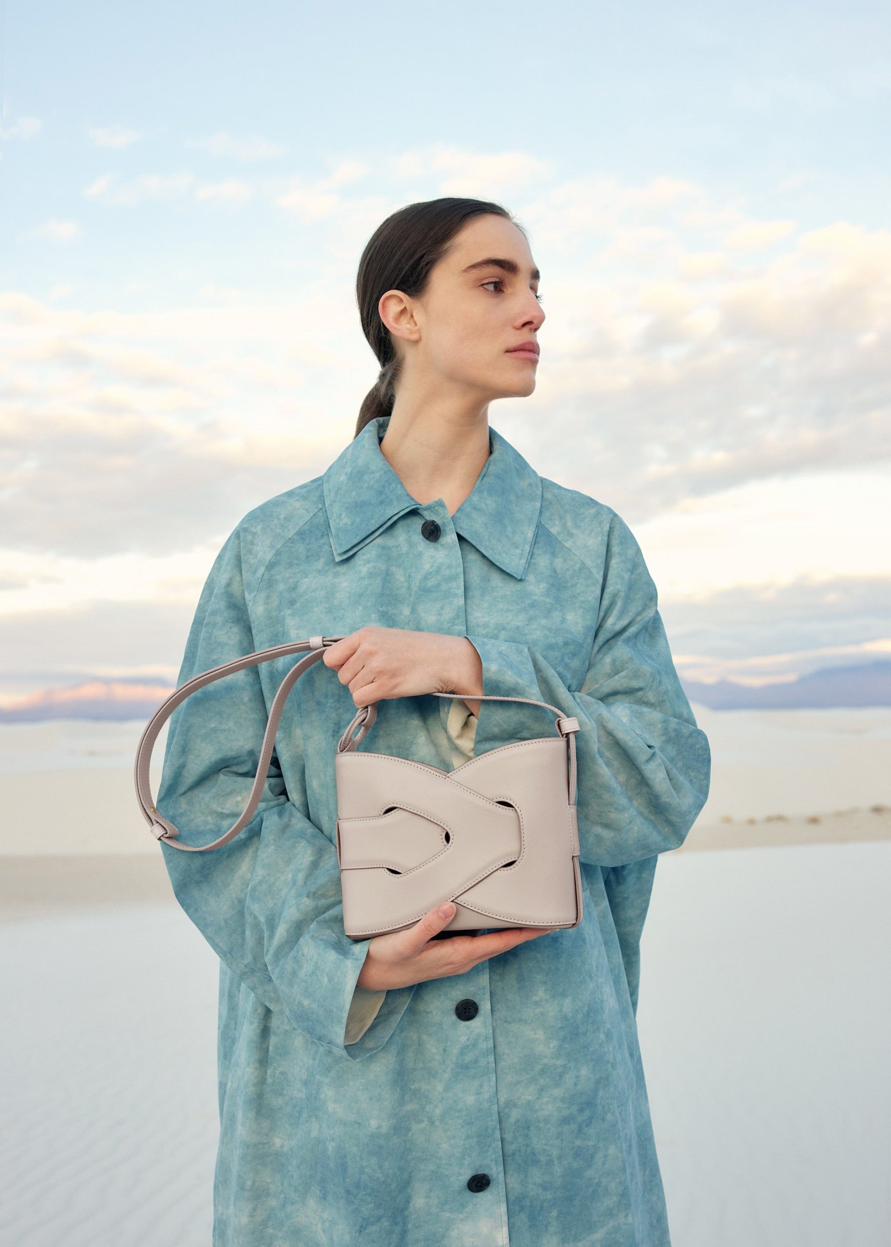 Composed of two matching and intertwined leather modules. the Nodde model is a bag with interlaced lines. highlighted by meticulous stitching and perfect symmetry.