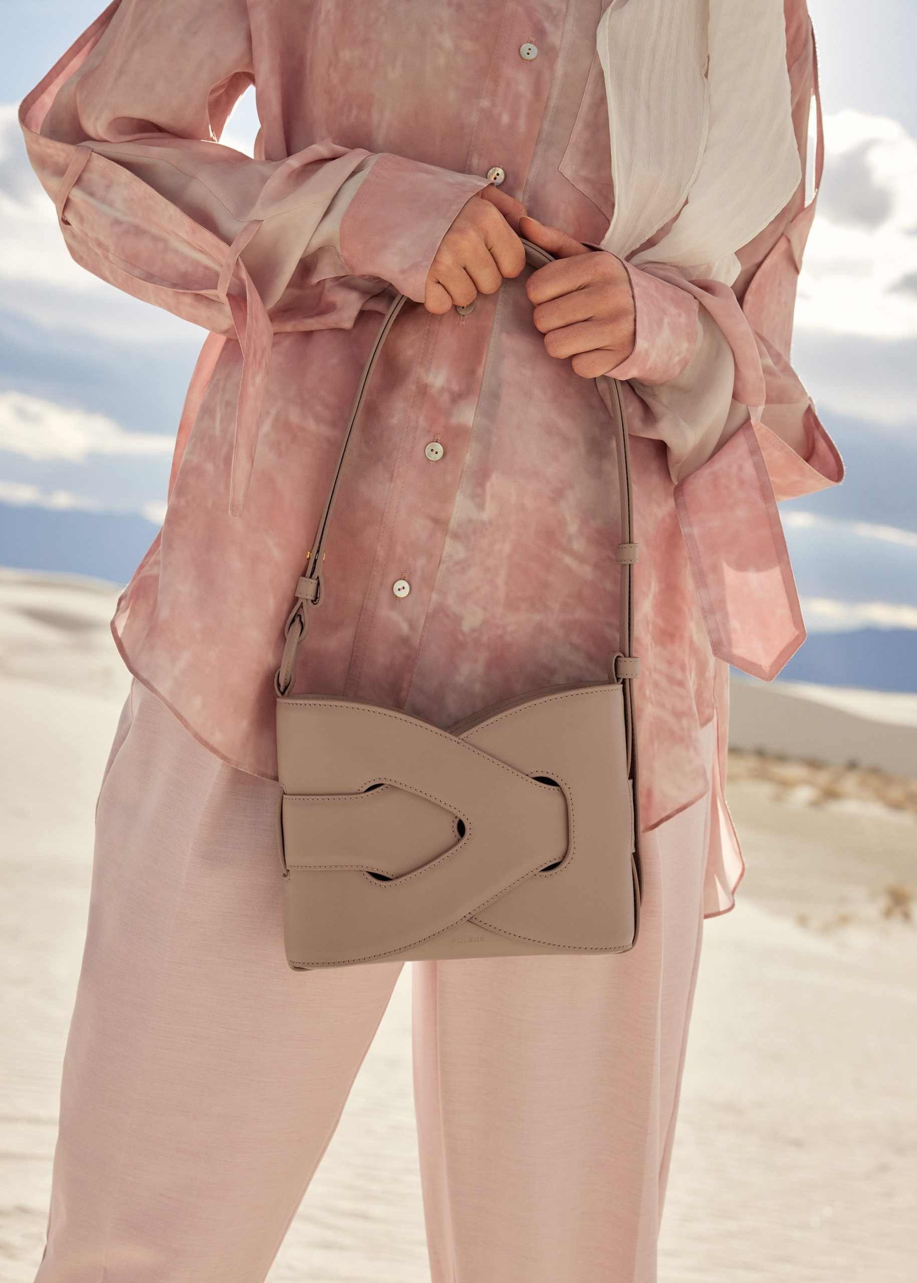 Composed of two matching and intertwined leather modules. the Nodde model is a bag with interlaced lines. highlighted by meticulous stitching and perfect symmetry.
