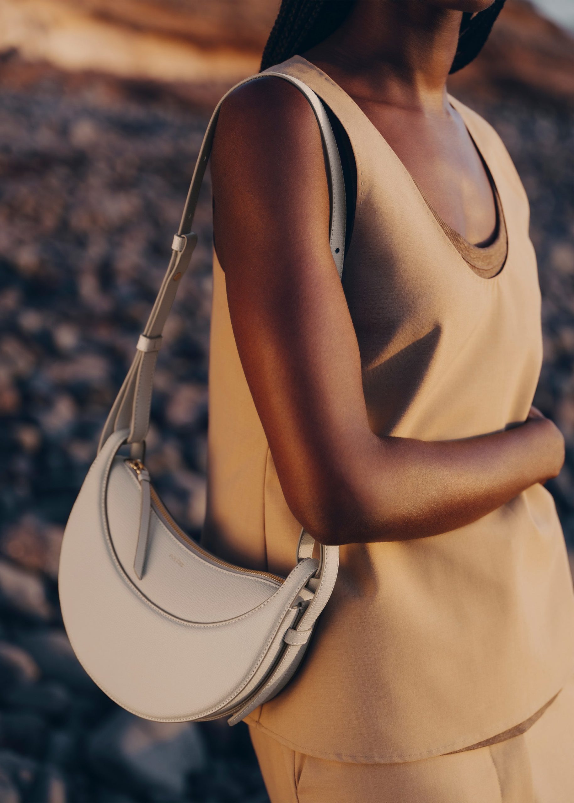 With its rounded shape. foam padding. and hand-stitching. the Numero Dix is a nod to the equestrian codes of saddlery. Its half-moon design highlights juxtaposing curves.