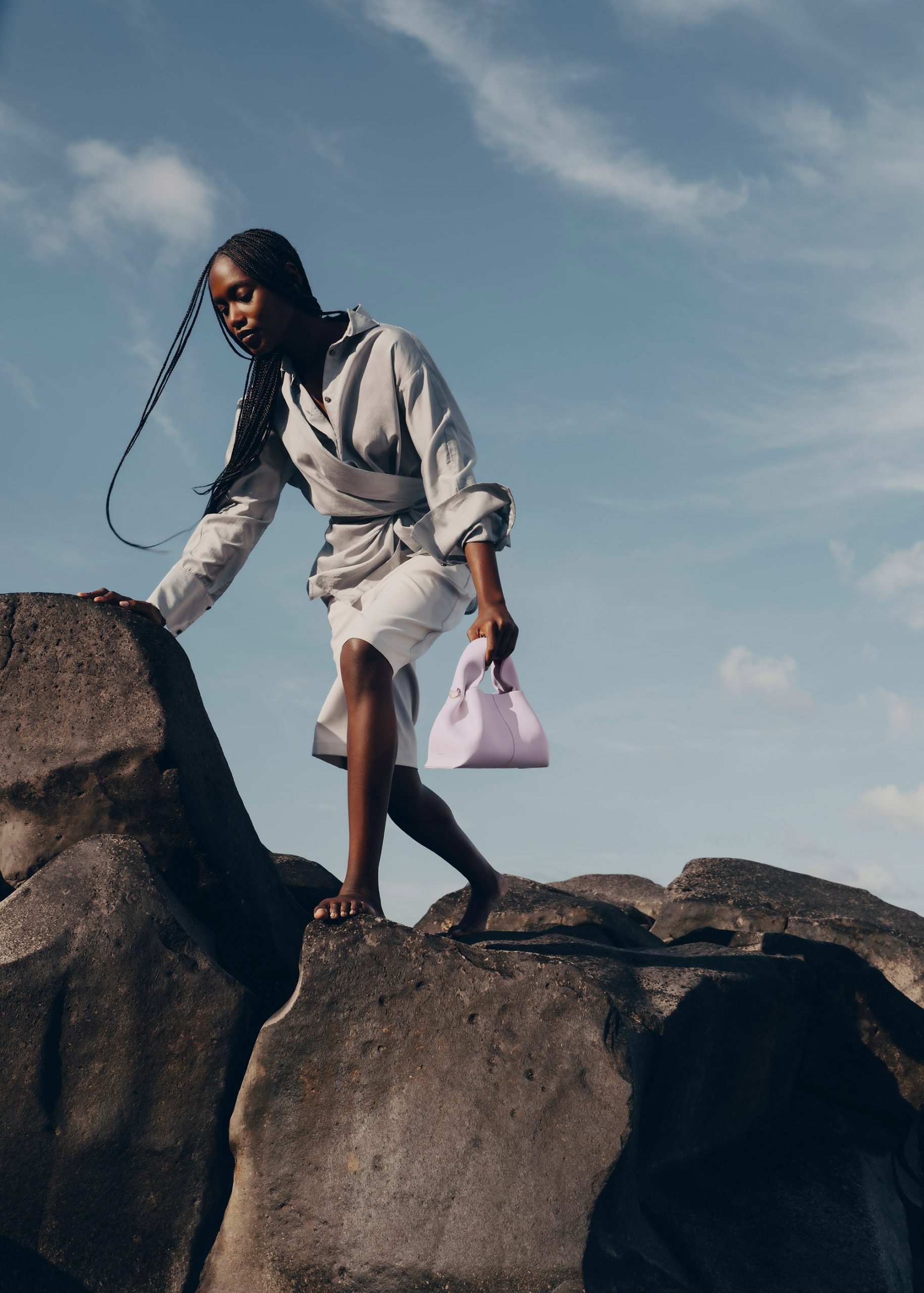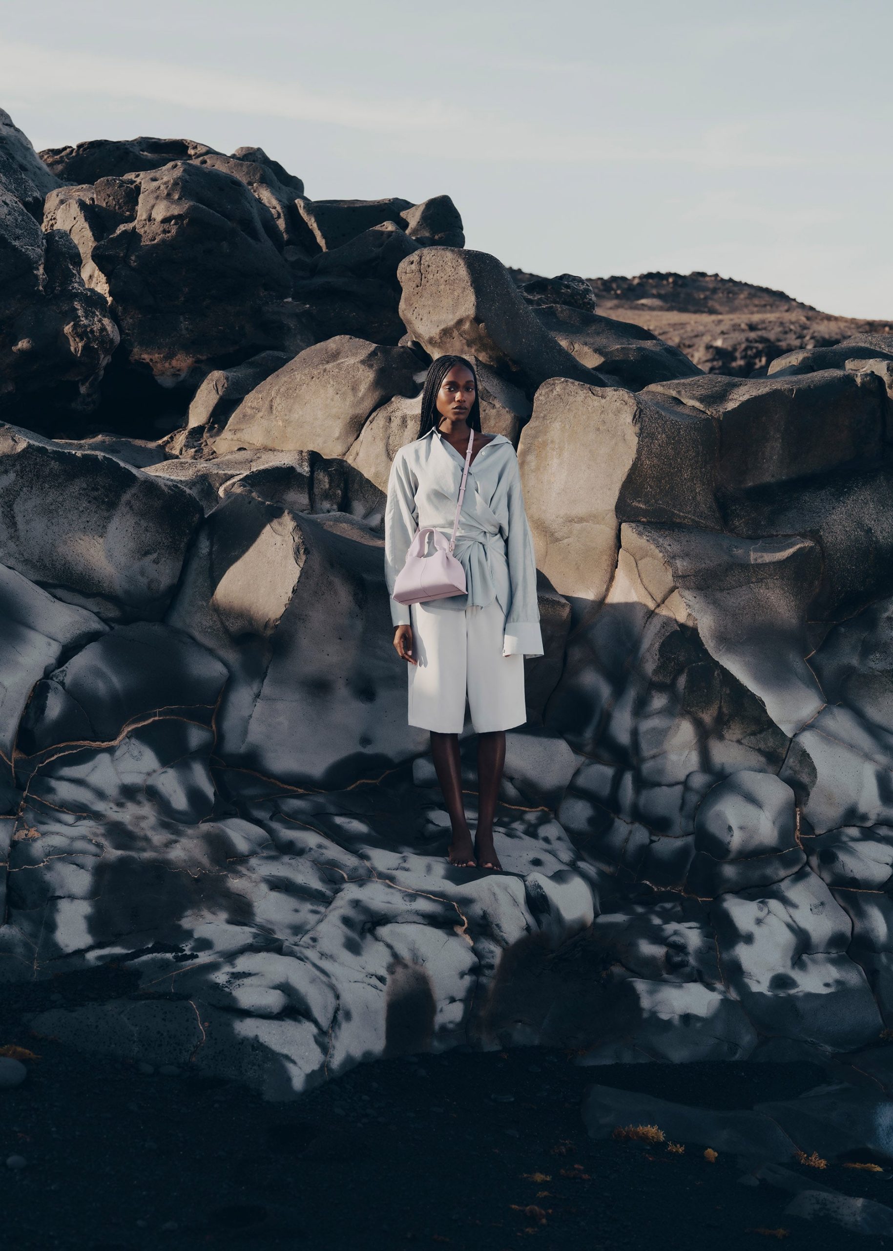 The Numero Neuf Mini features an organic design that strikes the right balance between flexibility and hold. Its draped leather is held in place by hand stitching.