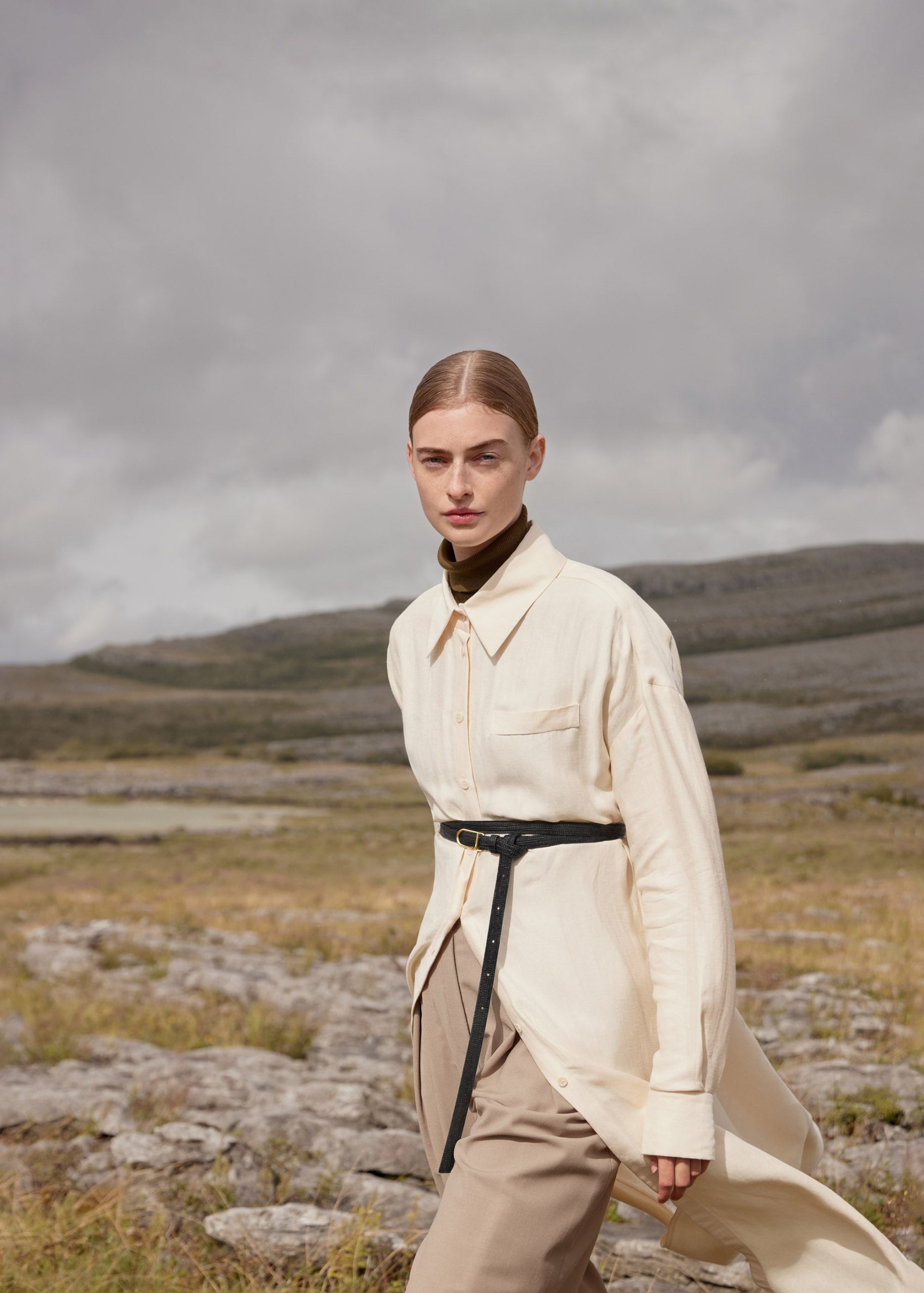 With its lizard print leather double-knot tied around a sober and elegant gold finish buckle. the thin Umi belt is the perfect accessory to emphasize the waist and structure the silhouette.